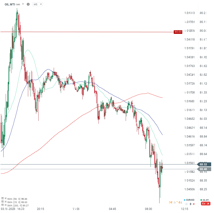 In risposta, stiamo assistendo al rimbalzo del WTI dopo i ribassi della sessione asiatica, anche se allo stesso tempo stiamo assistendo a reazioni alla resistenza vicino a 88,5 dollari al barile: