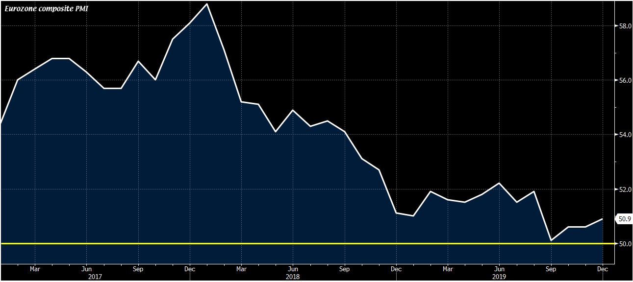 Detto questo, i dati indicano che, secondo questi sondaggi, l'ultimo trimestre dell'anno scorso è stato il peggiore dal 2013, quando il blocco era nel mezzo della crisi del debito. Le letture sono anche commisurate a un dato di crescita del PIL di appena lo 0,1% e mostrano che l'attività economica nella zona euro è praticamente piatta.