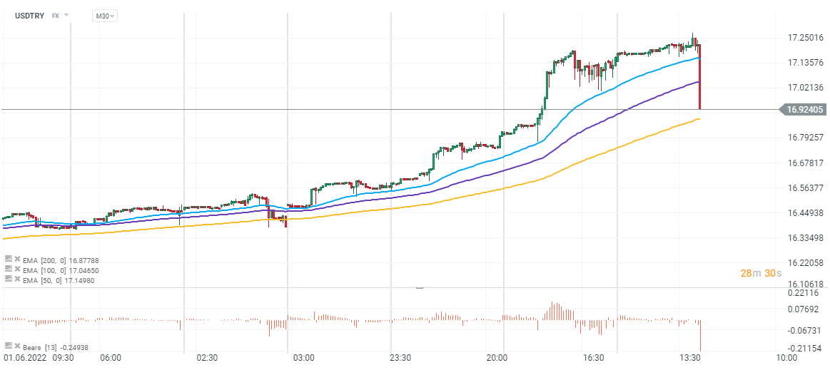 La lira turca si è rafforzata rispetto al dollaro dopo l'annuncio del ministro delle finanze. Fonte: xStation 5