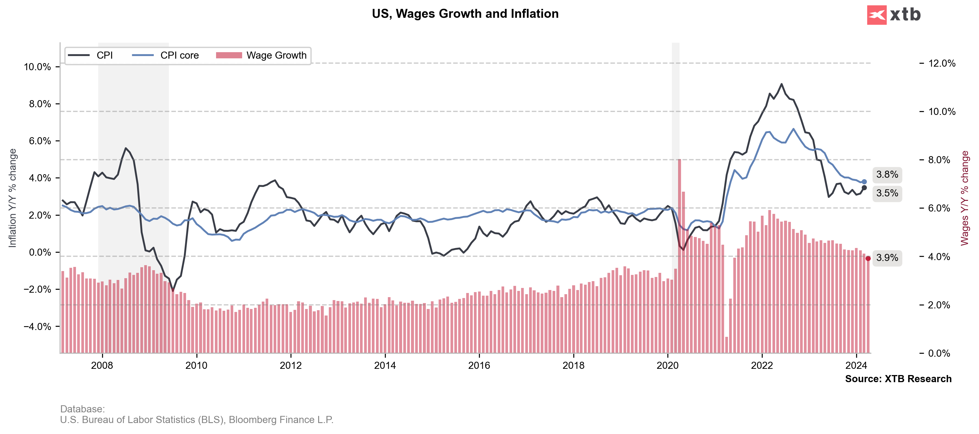 L'intervallo delle stime degli economisti nell'indagine Bloomberg è del 3,2-3,5% per l'indice dei prezzi al consumo principale e del 3,5-3,8% per l'indice dei prezzi al consumo core. Ciò significa che nessuno degli oltre 40 economisti intervistati si aspetta un’accelerazione, uno sviluppo positivo dopo due mesi di accelerazione a febbraio e aprile. Tuttavia, ciò significa anche che la reazione del mercato in caso di accelerazione inaspettata può essere significativa.