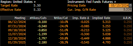 I dati recenti provenienti dagli Stati Uniti sembrano supportare l’idea che l’inflazione rimanga un argomento contro piuttosto che a favore dei tagli dei tassi. Il rapporto sull'inflazione PPI per aprile, pubblicato ieri, è risultato più o meno in linea con le aspettative del mercato, anche se il battito dei dati mensili è stato una sorpresa. Tuttavia, i dati molto più alti del previsto dei sottoindici dei prezzi ISM e la ripresa delle aspettative di inflazione dell’Università del Michigan sono chiaramente aggressivi. D’altro canto, un ulteriore rallentamento della crescita salariale potrebbe contribuire a raffreddare l’inflazione dei servizi.
