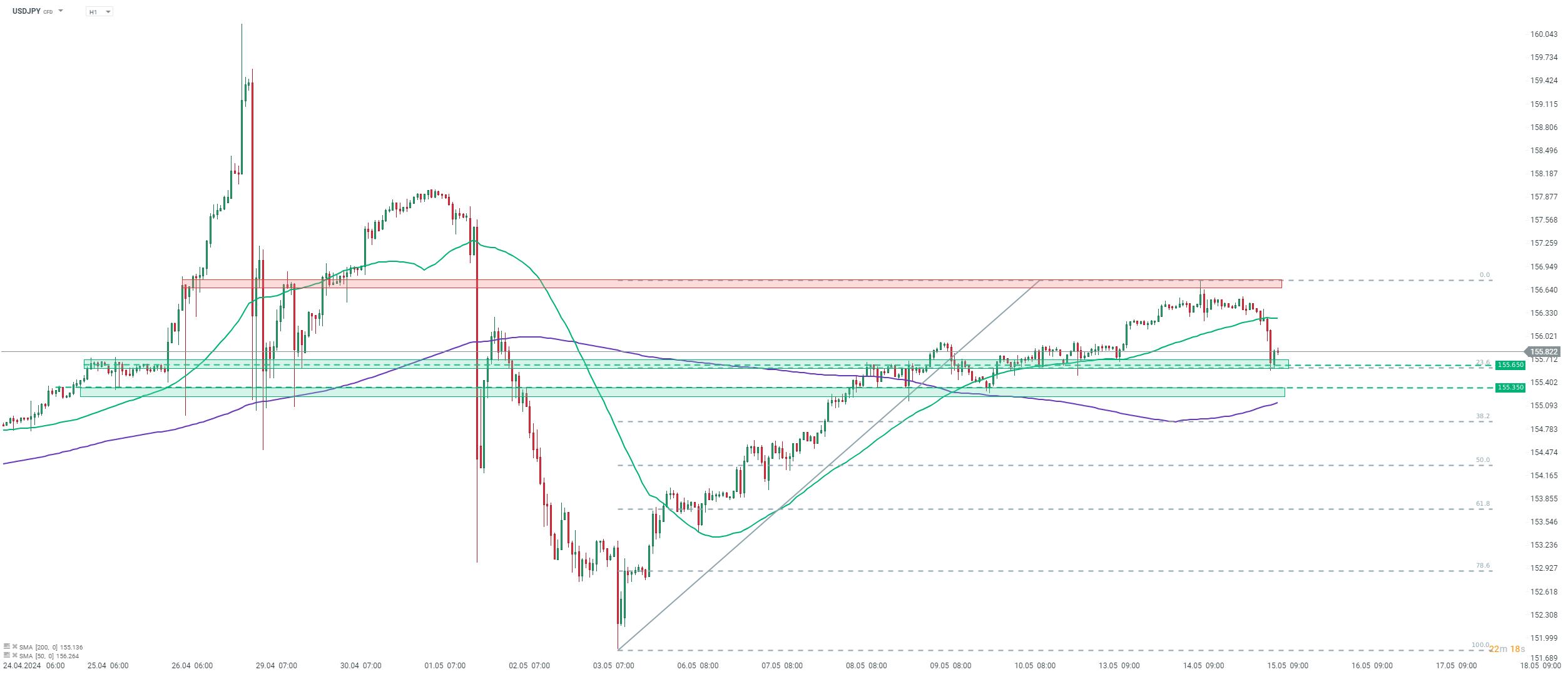 È probabile che il dollaro statunitense subisca un aumento della volatilità in seguito alla pubblicazione dei dati CPI statunitensi di aprile. Va inoltre notato che i dati sulle vendite al dettaglio negli Stati Uniti per aprile verranno pubblicati contemporaneamente alle 13:30 BST e influenzeranno anche la reazione del mercato. Oggi il dollaro USA si sta ritirando e al momento della stesura di questo articolo è la valuta del G10 con la performance peggiore. Dando un'occhiata al grafico USDJPY nell'intervallo H1, possiamo vedere che la coppia ha interrotto il recente movimento al rialzo e si è ritirata al ritracciamento del 23,6% dell'impulso al rialzo lanciato il 3 maggio 2024. Una sorpresa da falco nei dati, soprattutto un inaspettato l'accelerazione dell'inflazione, potrebbe aiutare a rilanciare il movimento al rialzo e spingere la coppia sopra l'area 156,75.