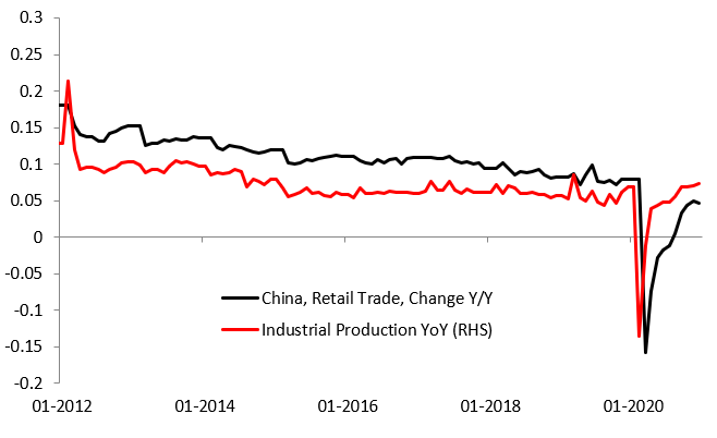 Prima di tutto, il PIL del quarto trimestre è salito a un impressionante 6,5% a / a dal 4,9% del terzo trimestre. Non troppo malandata come per l'economia che si sta riprendendo dalla pandemia in un contesto mondiale alle prese con la seconda ondata. Uno sguardo alla delusione delle vendite al dettaglio (2,6% a / a a dicembre) e alla produzione industriale (7,3%) è ciò che vogliamo sottolineare.