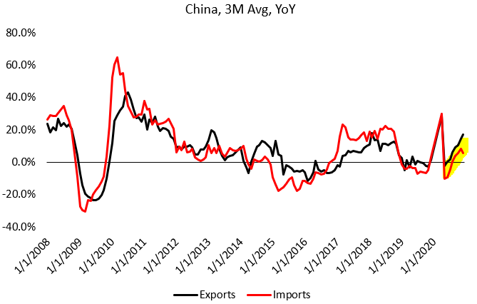 La Cina è stata la prima a essere stata colpita dalla pandemia, ma con una combinazione di restrizioni e disciplina è stata in grado di riaccendere il settore molto rapidamente. Sì, l'economia globale è debole ma con una buona parte ancora chiusa, i soldi degli stimoli spesso trovano la strada verso la Cina. Di conseguenza, Pechino non ha bisogno di flirtare con l'aggiunta di ulteriore debito e può facilmente contenere i rischi per la salute mentre la domanda esterna (alimentata da un debito ancora maggiore nelle economie avanzate) la aiuta a crescere e riequilibrarsi allo stesso tempo.