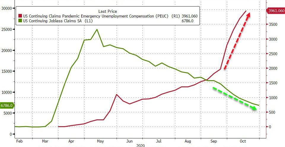 A prima vista i dati degli Stati Uniti sono stati molto ottimisti: le richieste di disoccupazione al livello più basso dall'inizio della pandemia e le richieste continue sono scese al minimo dalla fine di marzo. Bene, c'è un problema - dal momento che i benefici statali non ricevono più bonus federali, non tutto questo miglioramento va nell'occupazione - alcuni benefici sono stati semplicemente sostituiti da "Compensazione di disoccupazione di emergenza pandemica" che non è riportata nelle statistiche generali! Quando si tiene conto di ciò, la situazione non sembra molto positiva, anche prima delle nuove restrizioni che devono essere introdotte negli Stati Uniti a causa dei casi covid e dell'aumento dei ricoveri!