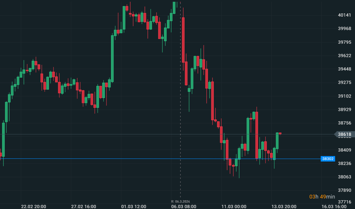 Prova di forza sui massimi da parte dei mercati azionari europei che nella giornata di ieri hanno di fatto registrato i nuovi massimi dell' anno, massimi che non sono riusciti ad aggiornare durante la serata in seduta americana. Negli Usa il Dow Jones ha provato l'attacco dei massimi storici del 23 febbraio, un movimento rialzista fermnatosi con molta fatica e che ha innescato un movimento ribassista molto forte in termini di velocità e ampiezza, movimento replicato anche da Nasdaq e S&P500. Questo movimento, avvenuto nell'ultima ora di contrattazione è stato quasi del tutto riassorbito negli ultimi minuti prima della chiusura del cash Usa, negando di fatto l'inizio di un movimento ribassista che avrebbe potuto caratterizzare la sessione asiatica. In Giappone il Nikkei225 recupera dai minimi con un rialzo di oltre lo 0,5% confermando i supporti delle scorse giornate in area 38300 punti. Questo movimento del Nikkei va a negare, almeno momentaneamente, le speranze di vedere un ritracciamento in pre-apertura dell'Europa che si prepara già ad aggredire i massimi visti ieri.