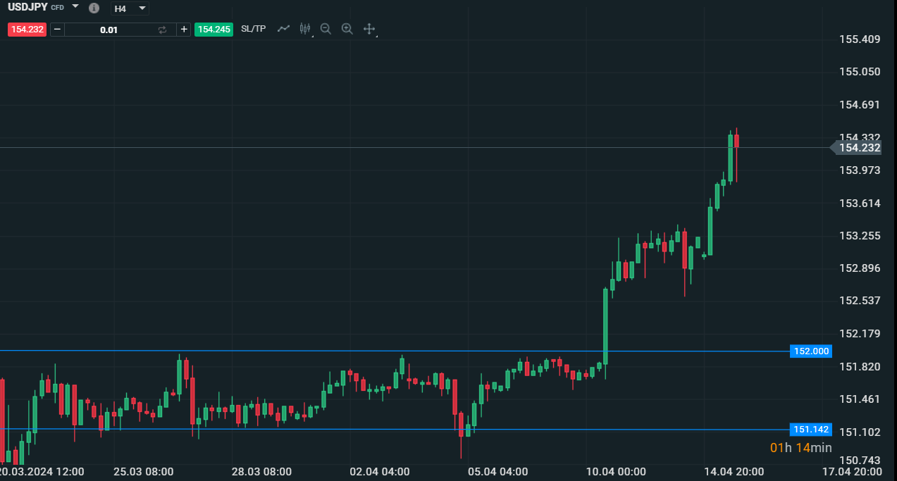Dinamica Intraday di UsdJpy che prova a puntare i 155 - Fonte:XStation