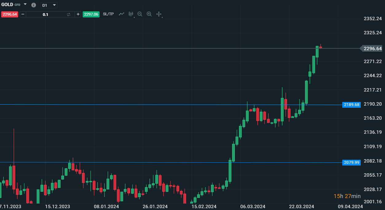 Oro su base daily raggiunge i massimi storici a 2300 dollari - Fonte: XStation