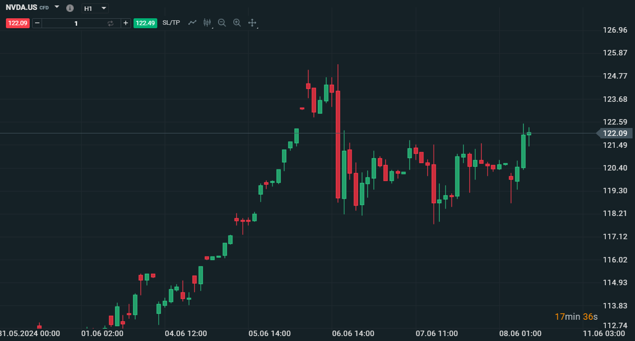 Nvidia aggiusta il prezzo per lo stock split e i "vecchi" 1200$ diventano 120$ ad azione, situazione che ha portato inizialmente non poca volatilitá in apertura e che ha portato il Nasdaq a rimanere ingabbiato all'interno di un trading range strettissimo per almeno un'ora dall'inizio delle contrattazioni. Ora Nvidia quota in area 122 dollari, in sostanza é come se fossero i 1220 dollari visti fino a venerdí. Le forti oscillazioni iniziali sono dovute proprio a questo frazionamento che ha portato il prezzo del titolo ad essere piú appetibile per gli investitori che non erano in grado di gestire il rischio di un titolo che prezzava oltre i 1000 dollari, pertanto la volatilitá vista oggi potrebbe caratterizzare anche le prossime giornate di negoziazione, una volatilitá che di certo non é ben vista al momento per via degli importanti eventi macro in agenda per la settimana.