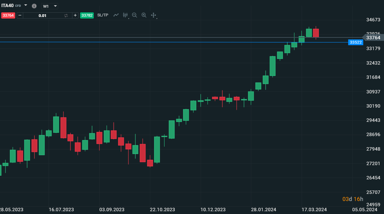 Questo materiale è una comunicazione di marketing ai sensi dell'Art. 24, paragrafo 3, della direttiva 2014/65 / UE del Parlamento europeo e del Consiglio, del 15 maggio 2014, relativa ai mercati degli strumenti finanziari e che modifica la direttiva 2002/92 / CE e la direttiva 2011/61 / UE (MiFID II). La comunicazione di marketing non è una raccomandazione di investimento o informazioni che raccomandano o suggeriscono una strategia di investimento ai sensi del regolamento (UE) n. 596/2014 del Parlamento europeo e del Consiglio, del 16 aprile 2014, relativo agli abusi di mercato (regolamento sugli abusi di mercato) e che abroga la direttiva 2003/6 / CE del Parlamento europeo e del Consiglio e direttive della Commissione 2003/124 / CE, 2003/125 / CE e 2004/72 / CE e regolamento delegato (UE) 2016/958 della Commissione, del 9 marzo 2016, che integra il regolamento UE) n. 596/2014 del Parlamento europeo e del Consiglio per quanto riguarda le norme tecniche di regolamentazione per le disposizioni tecniche per la presentazione obiettiva di raccomandazioni di investimento o altre informazioni che raccomandano o suggeriscono una strategia di investimento e per la divulgazione di particolari interessi o indicazioni di conflitti di interessi o qualsiasi altra consulenza, anche nell'ambito della consulenza sugli investimenti, ai sensi della legge sugli strumenti finanziari del 29 luglio 2005 (ad es. Journal of Laws 2019, voce 875, come modificata). La comunicazione di marketing è preparata con la massima diligenza, obiettività, presenta i fatti noti all'autore alla data di preparazione ed è priva di elementi di valutazione. La comunicazione di marketing viene preparata senza considerare le esigenze del cliente, la sua situazione finanziaria individuale e non presenta alcuna strategia di investimento in alcun modo. La comunicazione di marketing non costituisce un'offerta di vendita, offerta, abbonamento, invito all'acquisto, pubblicità o promozione di strumenti finanziari. XTB S.A. non è responsabile per eventuali azioni o omissioni del cliente, in particolare per l'acquisizione o la cessione di strumenti finanziari. XTB non si assume alcuna responsabilità per qualsiasi perdita o danno, anche senza limitazione, eventuali perdite, che possono insorgere direttamente o indirettamente, intrapresa sulla base delle informazioni contenute in questa comunicazione di marketing. Nel caso in cui la comunicazione di marketing contenga informazioni su eventuali risultati relativi agli strumenti finanziari ivi indicati, questi non costituiscono alcuna garanzia o previsione relativa ai risultati futuri. Le prestazioni passate non sono necessariamente indicative dei risultati futuri, e chiunque agisca su queste informazioni lo fa interamente a proprio rischio.