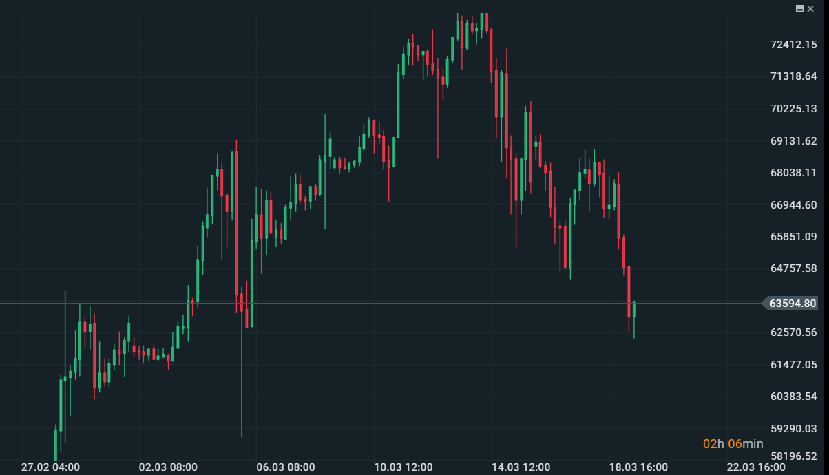 Da notare oggi il forte ribasso di Bitcoin che cede oltre il -5% e si porta a ridosso dei 64000 dollari, un forte calo considerando la forte propensione rialzista che si é vista nelle ultime settimane sulla crypto per eccellenza. Su Bitcoin bisogna prestare attenzione a questa settimana, sia dal punto di vista sistemico che dal punto di vista tecnico. Un indebolimento della dinamica settimanale potrebbe aprire a nuovi test dei massimi per la settimana successiva per vedere se effettivamente c'é spazio per un possibile movimento di ritracciamento nel breve periodo. Dal punto di vista sistemico, l-indebolimento dello scenario "risk on" che si presenta anche sui mercati azionari, potrebbe portare uno strumento sensibile al rischio come Bitcoin a possibili movimenti ribassisti.