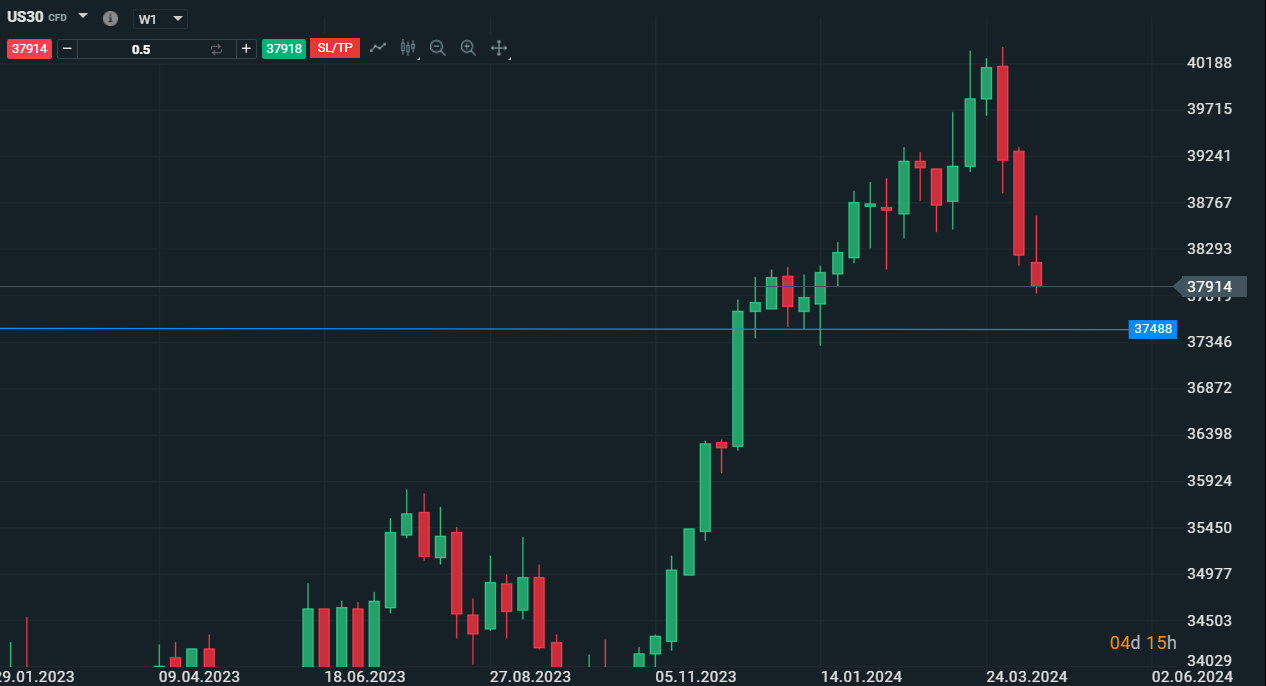 Dinamica Settimanale di Dow Jones che torna in negativo su base annuale - Fonte:XStation