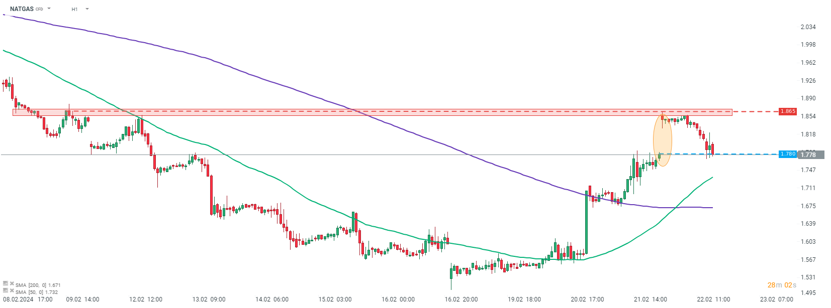 La US Energy Information Administration (EIA) ha pubblicato un rapporto settimanale sulle scorte di gas naturale negli Stati Uniti. Gli analisti si aspettavano un calo delle scorte di 59 miliardi di piedi cubi, dopo un calo di 49 miliardi di piedi cubi della settimana precedente. Il rapporto effettivo corrispondeva quasi esattamente a quelle aspettative, mostrando un calo di 60 miliardi di piedi cubi. NATGAS si è leggermente ritirato dopo il rilascio. Il prezzo ha chiuso il divario del rollover e sta tentando di scendere al di sotto dell'area di $ 1,78.