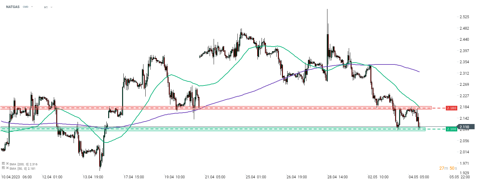 NATGAS tenta di rimbalzare dalla zona di supporto di $ 2,10 dopo il rapporto EIA. Fonte: xStation5