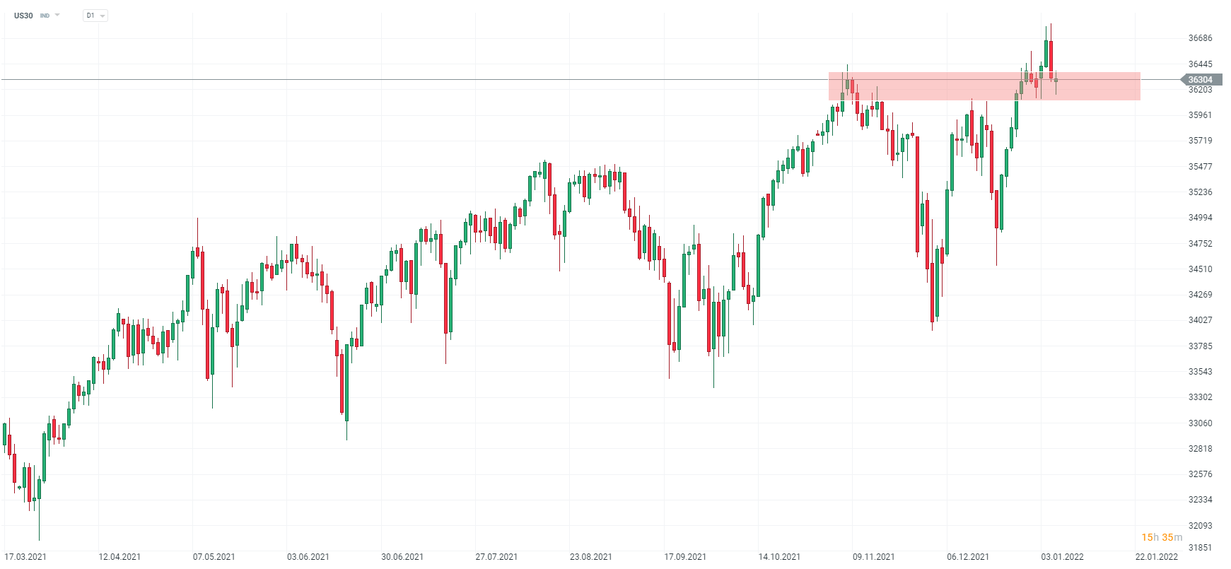 Finora il Dow (US30) ha resistito ai discorsi della Fed: utilizzerà i massimi di novembre come base per un rimbalzo?