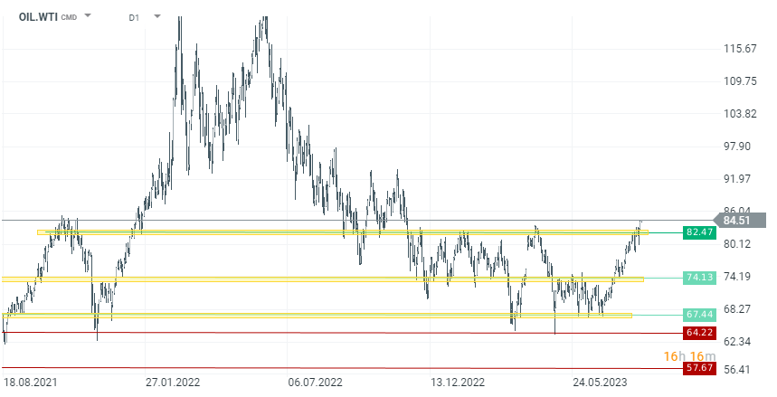OIL.WTI sale dello 0,4%, con il prezzo che sale a 84,5 dollari. Dopo i recenti forti aumenti, il prezzo del petrolio è ai massimi di quest'anno e si sta avvicinando alla zona di resistenza chiave al livello di 82-84 dollari.