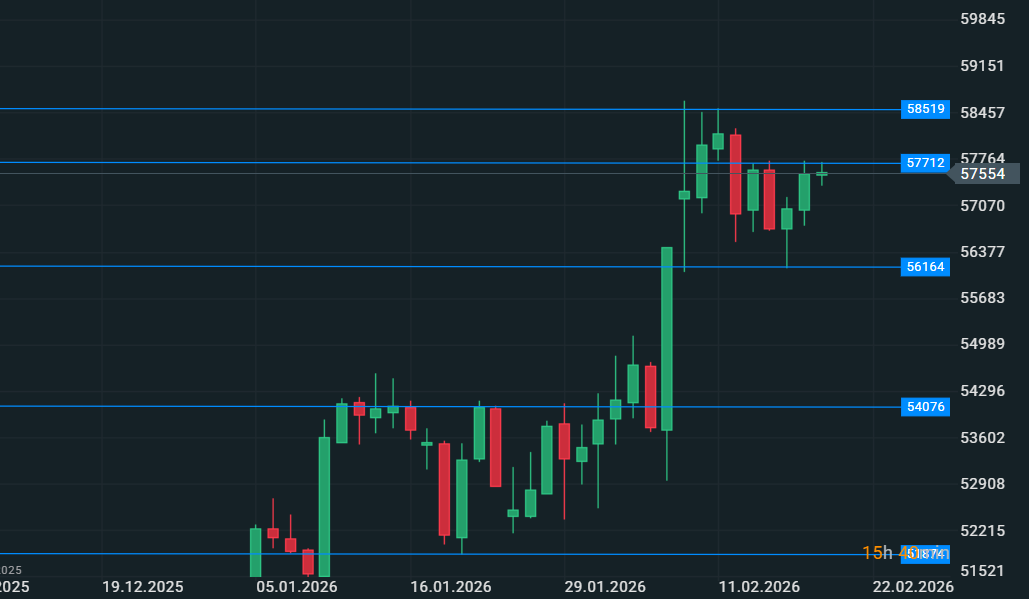 Nikkei grafico giornaliero e i test dei massimi di ieri - Fonte: XStation