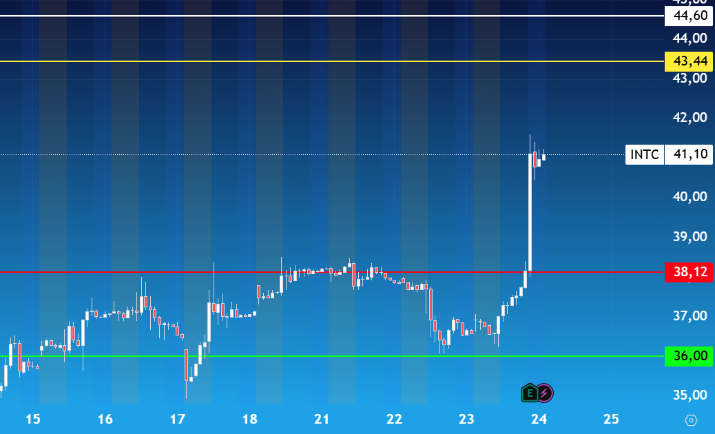 Grafico timeframe orario di Intel e rialzo post-trimestrale - Fonte: TradingVIew