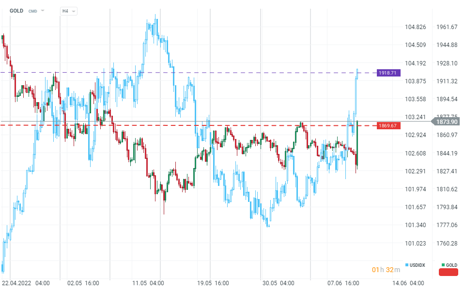 DXY ai massimi dal 17 maggio. Il decennale sta salendo sopra il 3,17%. Fonte: xStation 5
