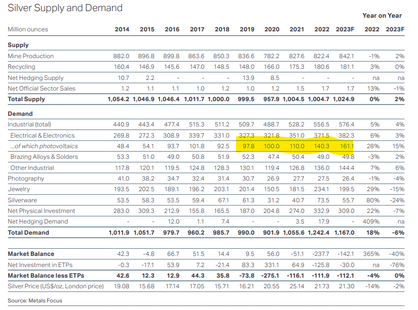 - Il deficit per l'anno 2023 è diminuito rispetto al 2022. Nel frattempo si registra ancora un aumento significativo della domanda da parte del settore fotovoltaico. Un altro rapporto del Silver Institute con le prospettive per il 2024 sarà pubblicato il 19 aprile