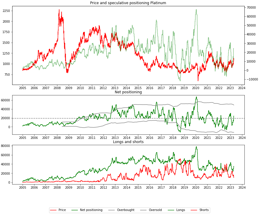 - Gli ETF hanno venduto le partecipazioni di platino per tutto il 2022, ma sono stati acquirenti netti nel 2023. Potrebbe essere una situazione simile a quella tra il 2018 e il 2019 o a metà del 2020