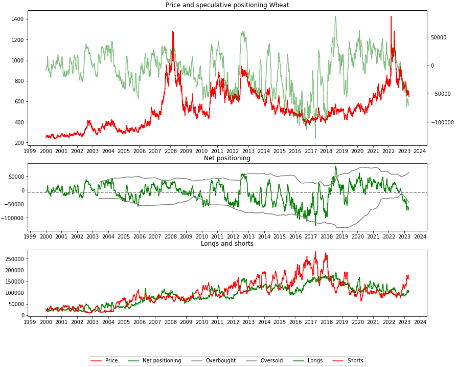 - Il posizionamento speculativo netto sul grano statunitense è estremamente basso se consideriamo gli anni passati, ma non altrettanto basso in termini storici