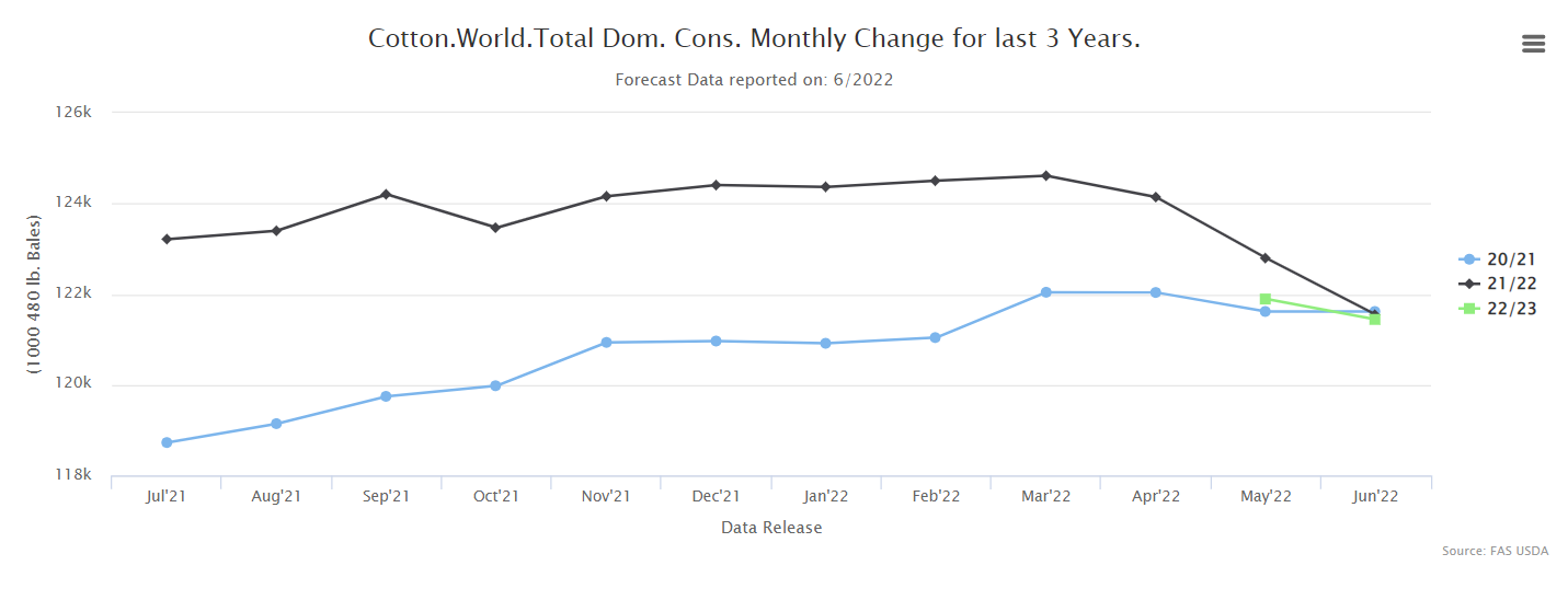 - La domanda di cotone è valutata come la più bassa rispetto alle 2 stagioni precedenti