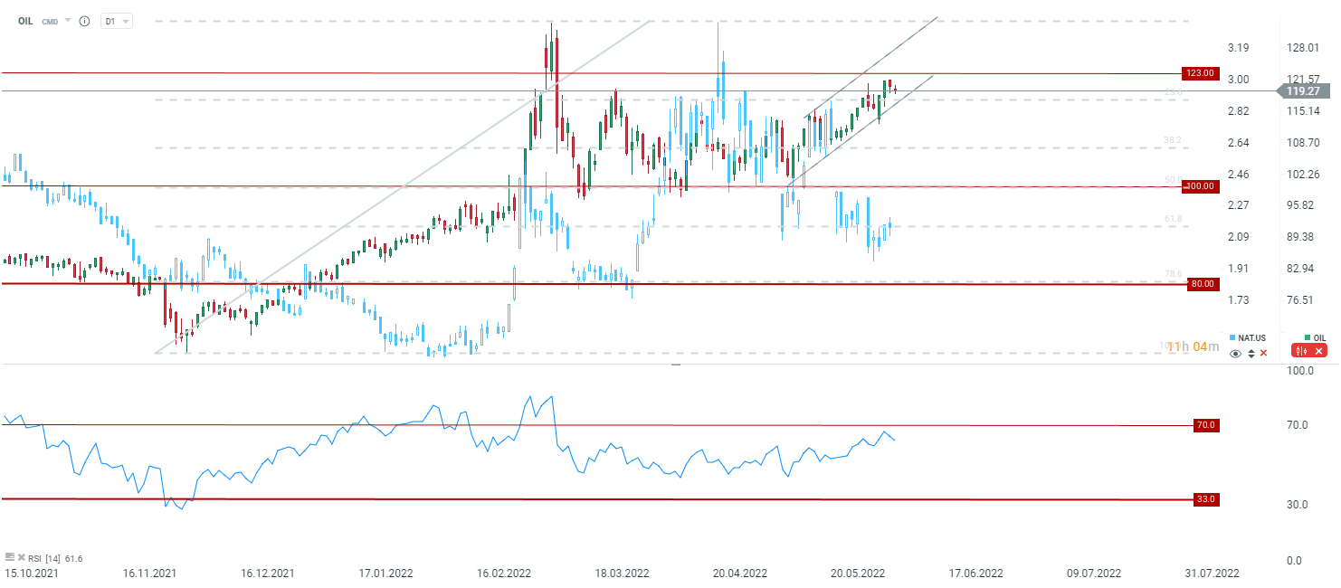 Il Brent (OIL) si aggira intorno a $ 120 al barile. D'altra parte, alcuni operatori di navi cisterna stanno ancora operando a valutazioni relativamente basse, dato l'aumento delle tariffe di trasporto. Fonte: xStation5