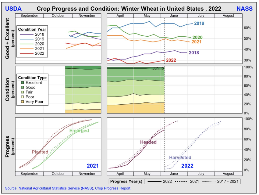 La qualità del grano statunitense è migliorata prima della stagione del raccolto, ma rimane peggiore rispetto ai 5 anni precedenti. Fonte: USDA