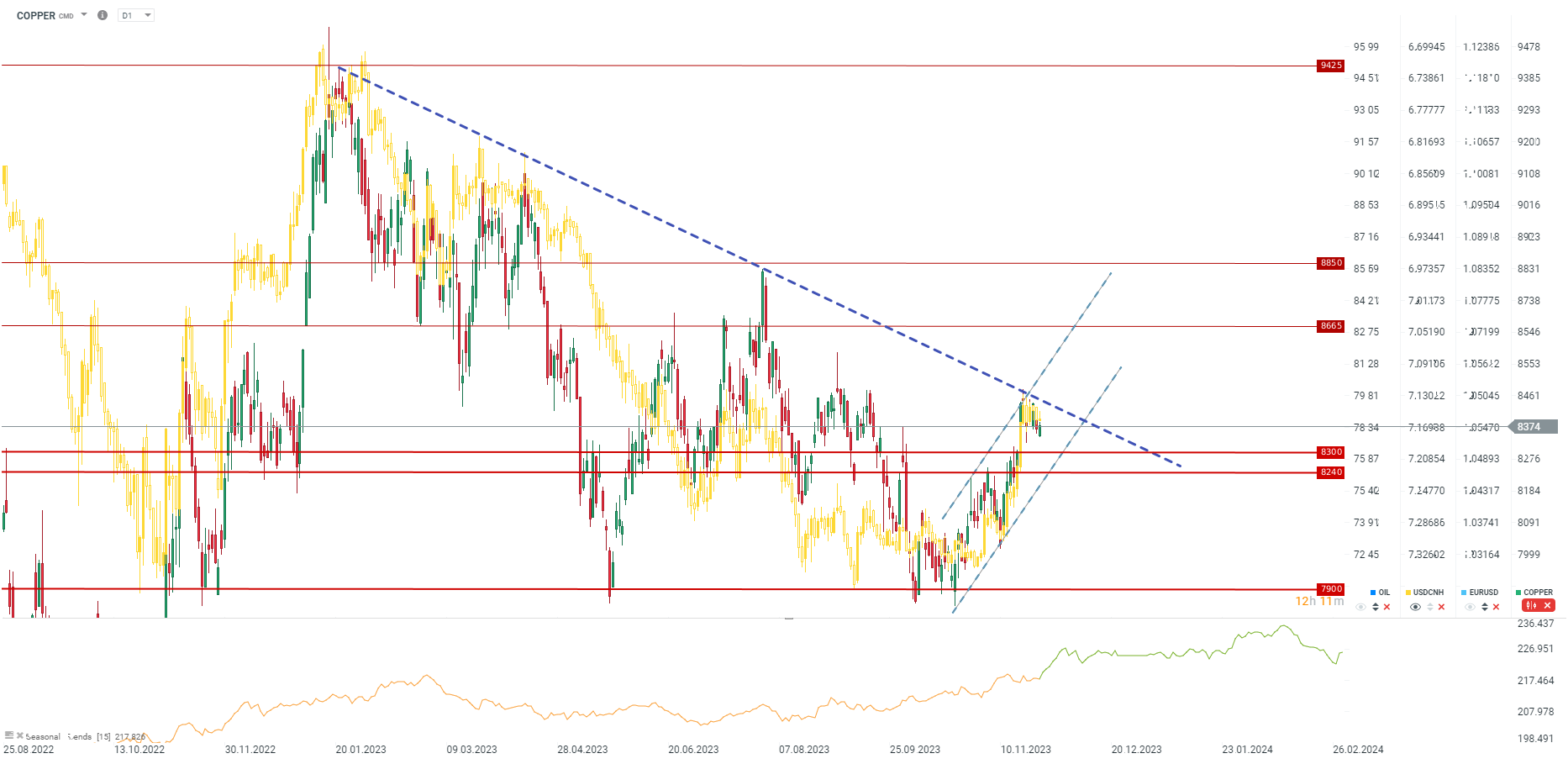 - La stagionalità suggerisce movimenti al rialzo nel mercato del rame fino alla fine della prima settimana di dicembre