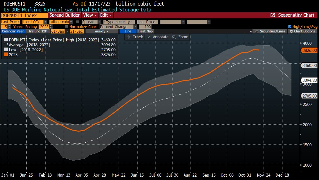 - Se le scorte di gas continueranno a diminuire nelle prossime settimane in base alla stagionalità, i prezzi potrebbero scendere fino a raggiungere i 2,75 dollari per milione di unità termiche britanniche (MMBTU).