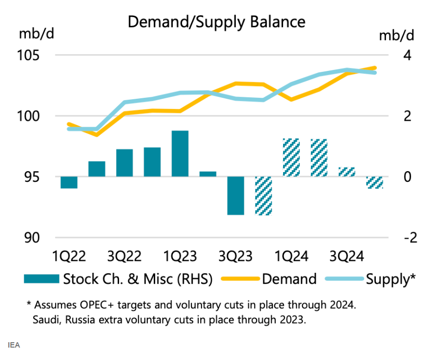 L’AIE suggerisce un significativo eccesso di offerta di petrolio nel breve termine. L’OPEC+ tenterà di impedirlo? Fonte: IEA