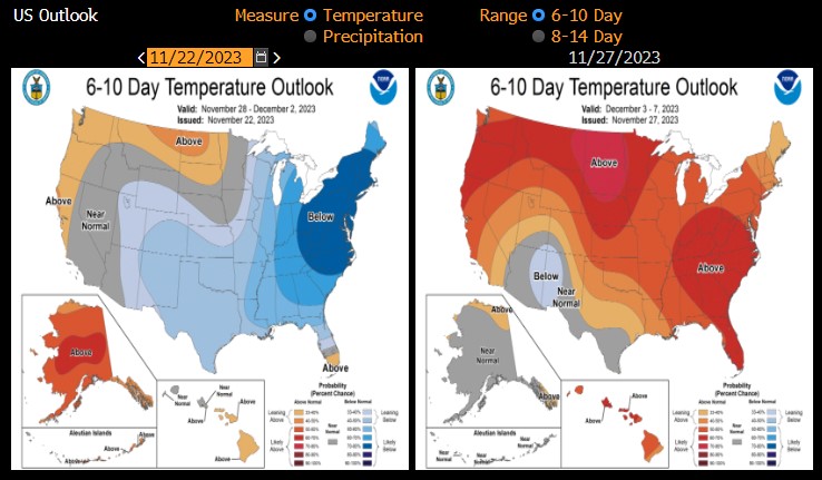 Nei prossimi 8-14 giorni sono previste temperature superiori alla media in tutti gli Stati Uniti. Fonte: Bloomberg Finance LP