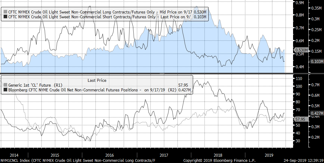 Il posizionamento speculativo sull'olio cambiato poco durante la scorsa settimana. Fonte: Bloomberg