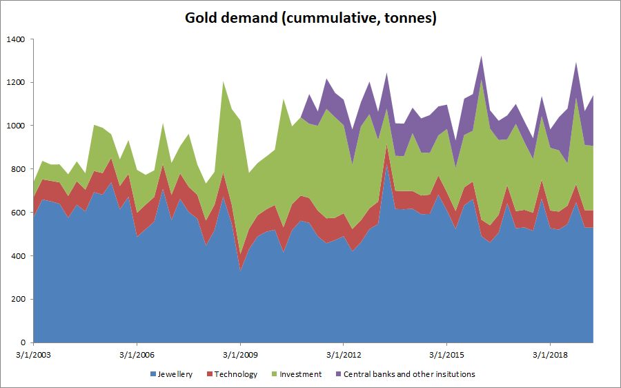 - La domanda di investimenti e gli acquisti dei banchieri centrali sono rimasti sostanzialmente stabili nell'ultimo trimestre del 2019