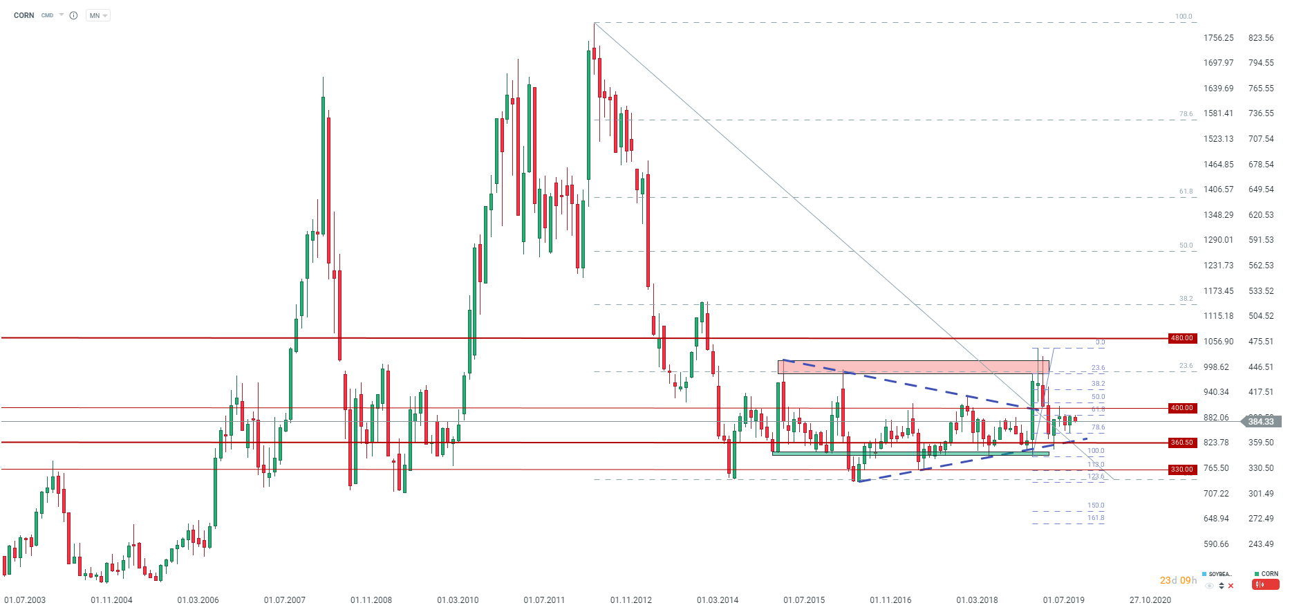 - Il range di un potenziale breakout dal modello triangolare 2015-2018 è stata quasi realizzata