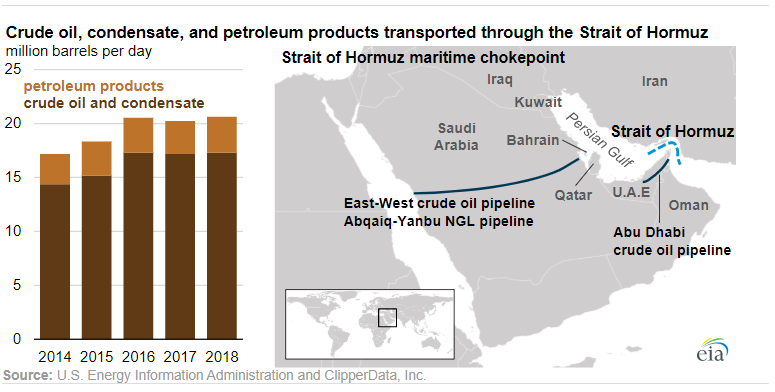 Circa 21 milioni di barili di petrolio attraversano lo Stretto di Hormuz ogni giorno. Fonte: VIA