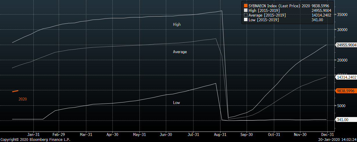 Le esportazioni di soia statunitensi in Cina non sembrano troppo impressionanti all'inizio dell'anno. Fonte: Bloomberg