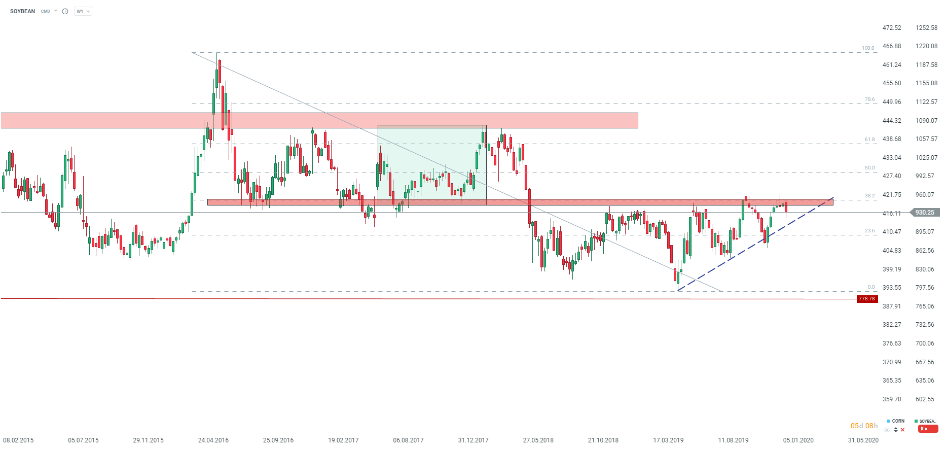La soia si ritira dall'importante zona di resistenza. Fonte: xStation5