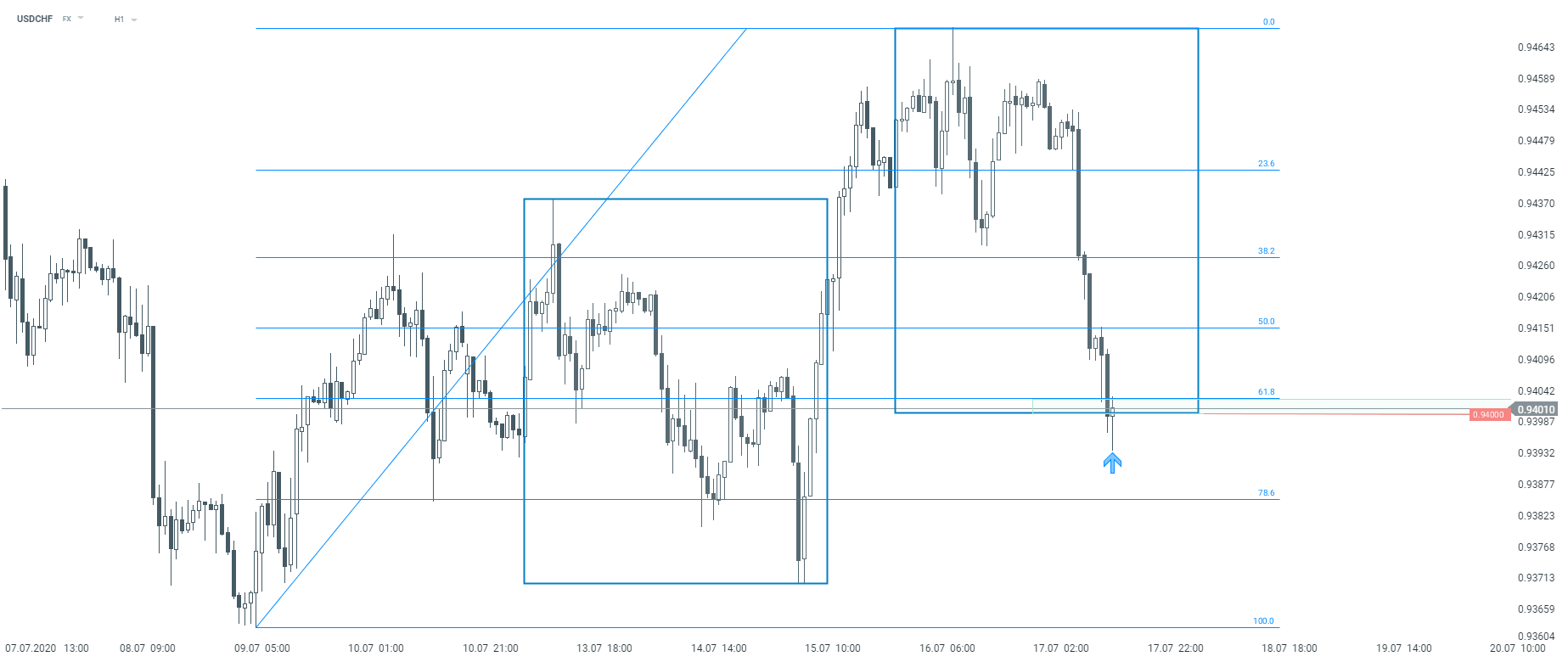 USDCHF è in ribasso oggi. Tuttavia, osservando il grafico H1, la coppia ha raggiunto un'area di supporto chiave. È contrassegnata con il limite inferiore della struttura 1: 1, il 61,8% del ritracciamento di Fibonacci e il livello di 0,9400. Se gli acquirenti riescono a fermare il ribasso qui, potrebbe essere generata una mossa verso l'alto. D'altra parte, se venisse superato questo supporto, potrebbe innescare un movimento ribassista maggiore.