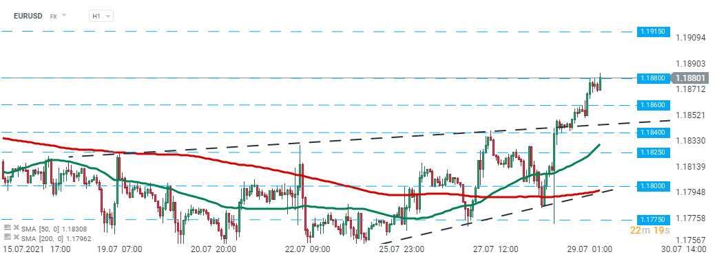 EURUSD ha superato la resistenza a 1,1880 dopo la pubblicazione dei dati di oggi e si sta dirigendo verso il prossimo livello di resistenza a 1,1915. Fonte: xStation5