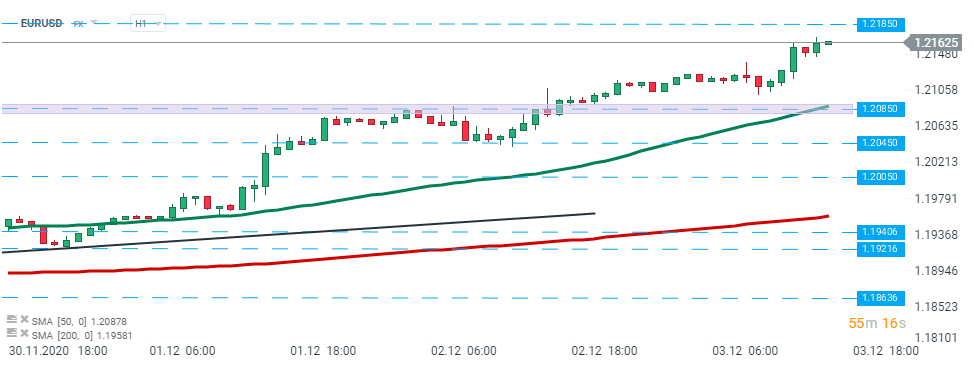 EURUSD ha registrato una reazione relativamente modesta ai dati rilasciati oggi. La coppia di valute continua ad aggirarsi intorno al livello di 1,2160. Fonte: xStation5