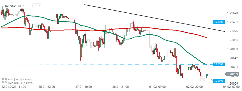 EURUSD ha avuto una reazione relativamente modesta ai dati rilasciati oggi. La coppia di valute più popolare continua ad aggirarsi intorno al livello di 1,2025. Fonte: xStation5