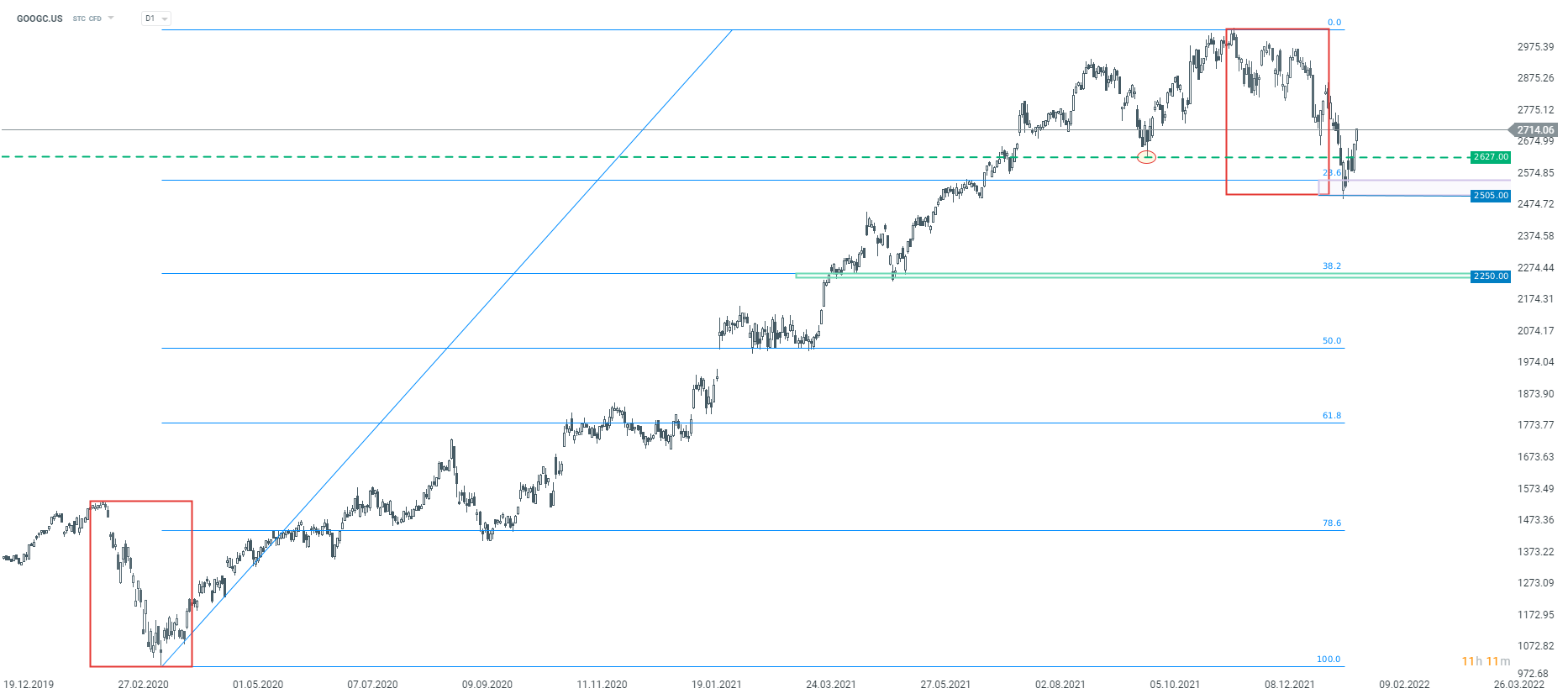 Alphabet (GOOGL.US) ha sottoperformato di recente, proprio come altre azioni tecnologiche. Tuttavia, il titolo è riuscito a rimbalzare dal limite inferiore della struttura Overbalance, confermando che il trend rialzista è ancora in gioco. Il prezzo delle azioni si è ripreso e da un punto di vista tecnico, la strada verso massimi sopra i 3.000 dollari è lasciata aperta. Tuttavia, la pubblicazione degli utili è un grande evento con il potenziale per invertire la tendenza.