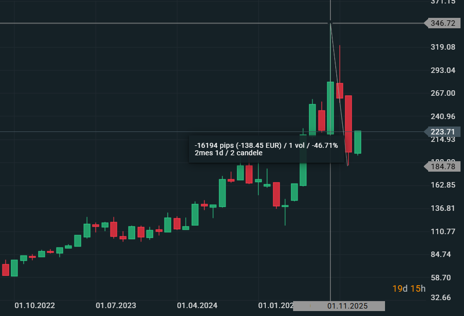 Oracle e l'oscillazione negativa dai massimi di settembre di oltre il -40% - Fonte:XStation