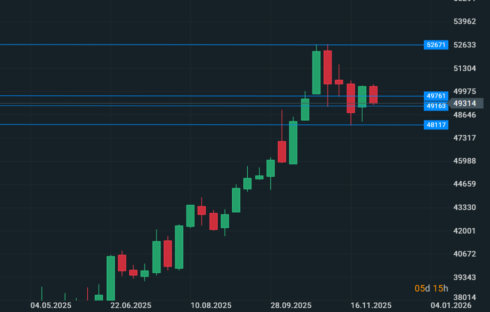 Ueda apre alla possibilitá di vedere un rialzo dei tassi di interesse nel corso delle prossime riunioni della Boj, la prossima é in programma per venerdí 19 dicembre. Queste voci sembrano aver alimentato il ribasso che vediamo sul Nikkei che scende di quasi un -2%, un ribasso molto forte considerando che ci troviamo in apertura di settimana e in apertura di mese. Per quanto riguarda i dati macro, non abbiamo dati di estremo rilievo per la settimana se non per alcuni dati europei e per il mercato del lavoro in Usa.