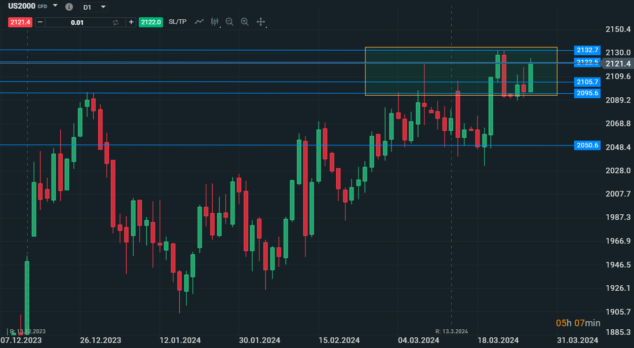 Russell2000 grafico giornaliero in test dei massimi - Fonte: XStation