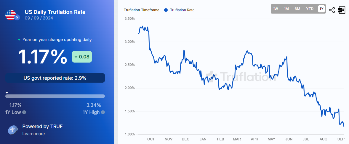 Inflazione Usa riportata da Truflation - Fonte:Truflation.com