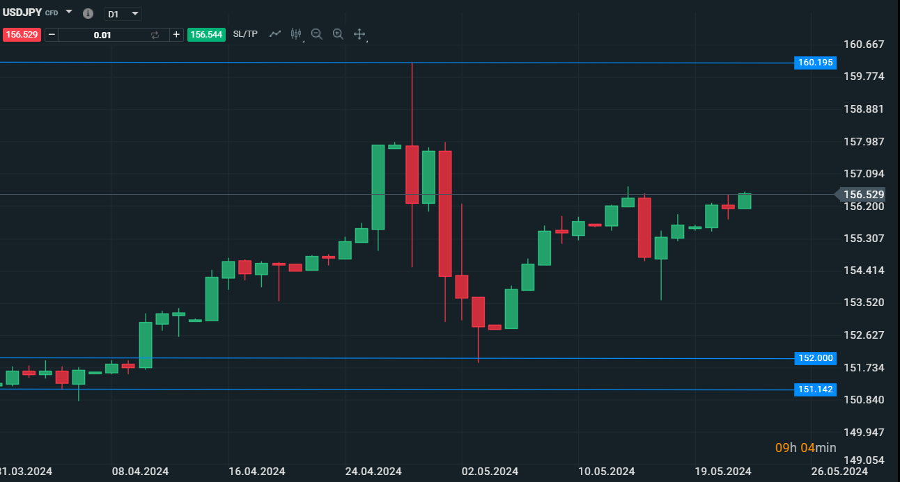 UsdJpy a timeframe giornaliero e i suoi nuovi massimi - Fonte:XStation