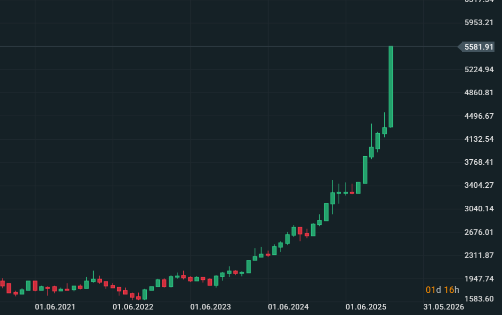 Il Rialzo dell'Oro su base mensile - Fonte: XStation